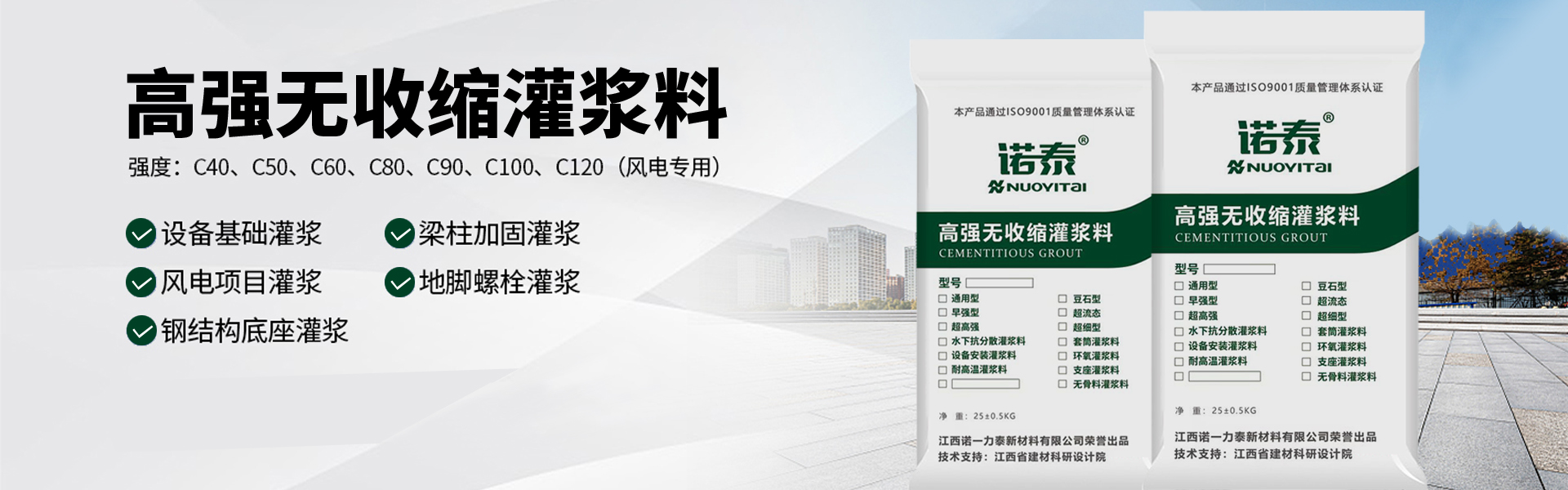 江西諾一力泰新材料有限公司位于江西宜春奉新縣,是專業從事灌漿料水泥路面修補砂漿抗裂砂漿防水砂漿、保溫砂漿、隔聲砂漿、粘結砂漿等砂漿系列產品生產銷售的廠家。